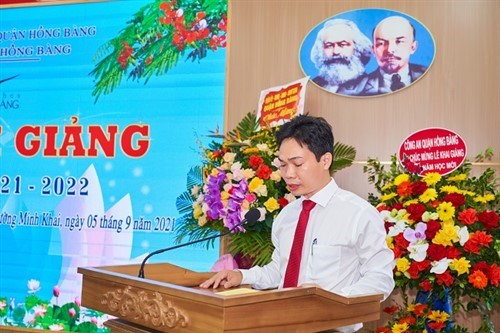 Ngày khai giảng năm học 2021-2022 diễn ra thật đặc biệt trong hoàn cảnh dịch bệnh Covid-19 đang diễn ra phức tạp, thời tiết không thuận lợi do mưa lớn. Được sự quan tâm sâu sắc của các cấp uỷ Đảng và chính quyền địa phương, của Sở GD&ĐT thành phố, lễ khai giảng năm học mới đã được diễn ra trong không khí trang trọng, ấm áp và đầy ý nghĩa tại hội trường trường THCS Hồng Bàng.