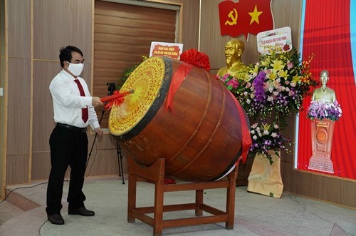 Đồng chí Nguyễn Minh Tuấn – Phó Bí thư Quận ủy, Chủ tịch UBND quận đánh trống khai giảng năm học mới 2021 – 2022.