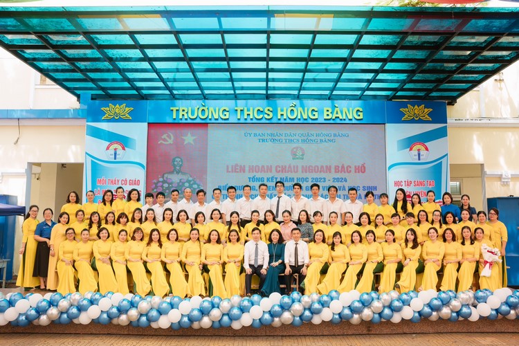 Thực hiện Kế hoạch nhiệm vụ năm học 2023-2024, Kế hoạch hoạt động Đội Thiếu niên và Phong trào thiếu nhi năm học 2023-2024 của trường THCS Hồng Bàng, ngày 29/5/2024, Đảng ủy, Ban giám hiệu trường THCS Hồng Bàng long trọng tổ chức Liên hoan Cháu ngoan Bác Hồ, tổng kết năm học, biểu dương, khen thưởng giáo viên và học sinh có thành tích xuất sắc trong các hội thi, trong công tác phát hiện và bồi dưỡng học sinh giỏi năm học 2023-2024.