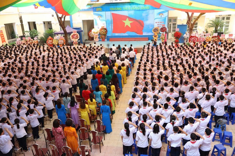 Những câu ca, vần thơ được ngân vang trong tiết mục văn nghệ chào mừng năm học mới của các em học sinh trường THCS Hồng Bàng trong ngày khai giảng sáng ngày 05/9/2024 đã làm xua đi cái nắng hè gay gắt, thổi vào đó làn gió nhè nhẹ trong mát của mùa thu, đem đến niềm vui hân hoan, rạo rực trong ngày tựu trường cho thầy và trò nhà trường.