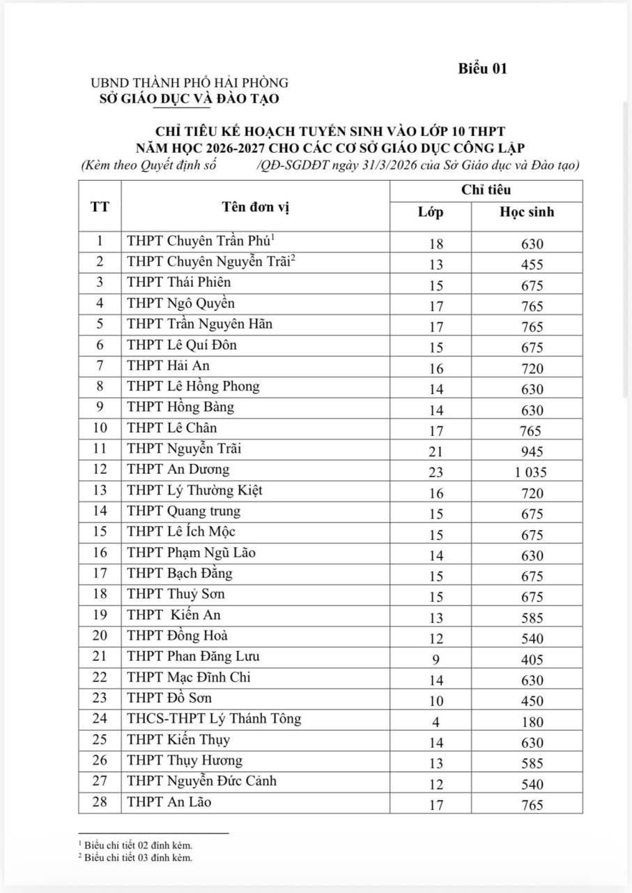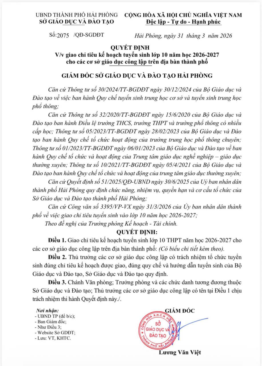 ☘ Có những chặng đường không dài nhưng đủ để thay đổi cả một hành trình phía trước. Kỳ thi vào lớp 10 chính là một chặng đường như thế! Sở GD&ĐT Hải Phòng đã công bố chỉ tiêu tuyển sinh cho năm học 2026 - 2027 với 1.091 lớp – 48.746 học sinh ☘