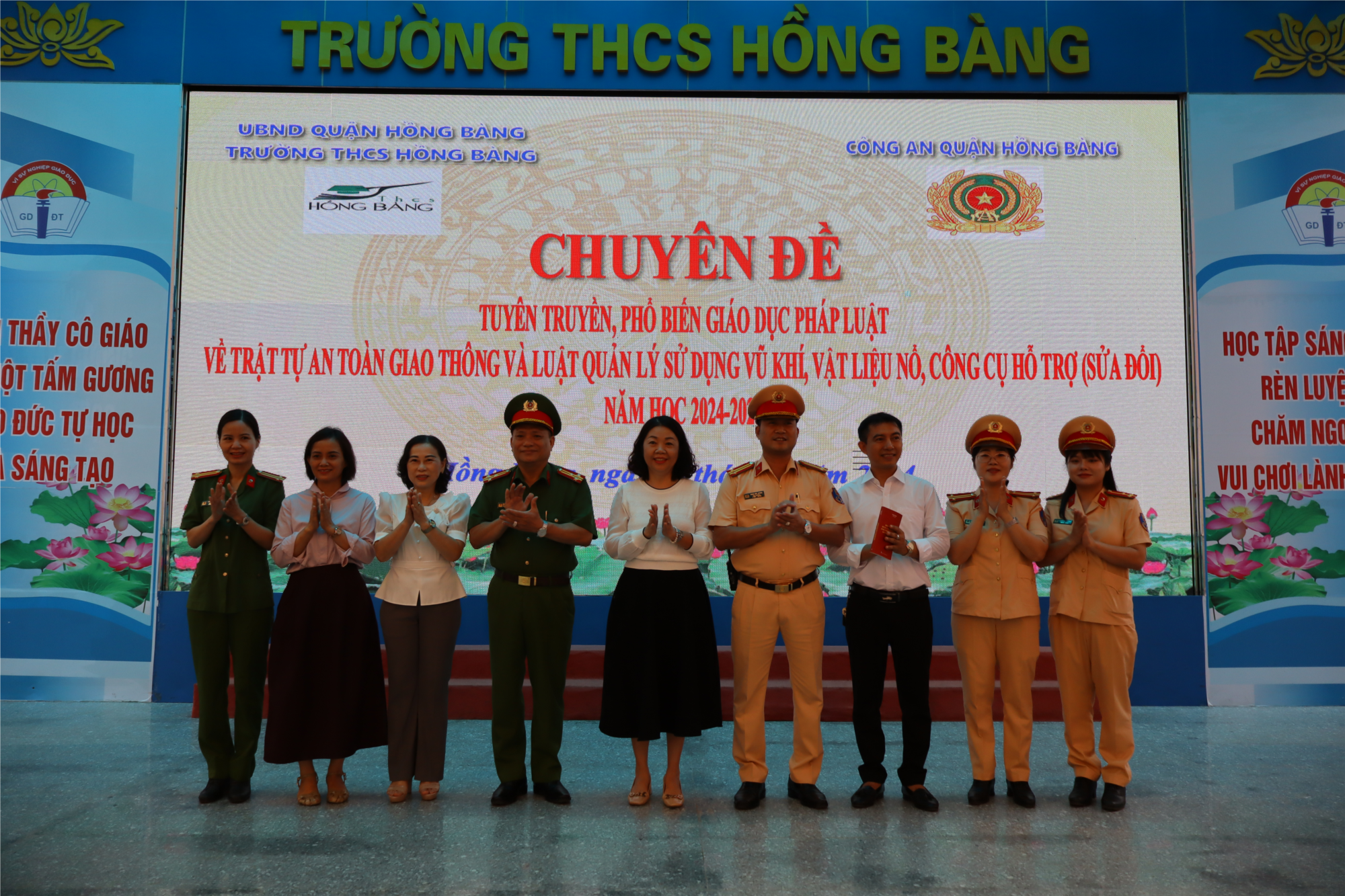 Thực hiện kế hoạch nhiệm vụ giáo dục năm học 2024-2025, Trường THCS Hồng Bàng phối hợp với Công an quận Hồng Bàng tổ chức thành công chuyên đề “Tuyên truyền, phổ biến giáo dục pháp luật về Trật tự ATGT; quản lí, sử dụng vũ khí, vật liệu nổ, công cụ hỗ trợ (sửa đổi) năm học 2024-2025 cho toàn thể CBGVNV và học sinh nhà trường.