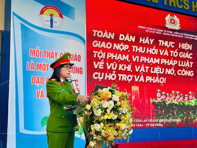 Thực hiện Kế hoạch số 247/KH-CATP-PC06 ngày 05/8/2025 của Giám đốc Công an thành phố Hải Phòng về công tác phòng ngừa trẻ em và người chưa thành niên tụ tập, sử dụng vũ khí, hung khí để giải quyết mâu thuẫn, sáng ngày 12/01/2026, Phòng Cảnh sát QLHC về TTXH – Công an TP Hải Phòng đã phối hợp cùng Trường THCS Hồng Bàng tổ chức buổi tuyên truyền, phổ biến giáo dục pháp luật tới toàn thể cán bộ, giáo viên, nhân viên và học sinh trong nhà trường.