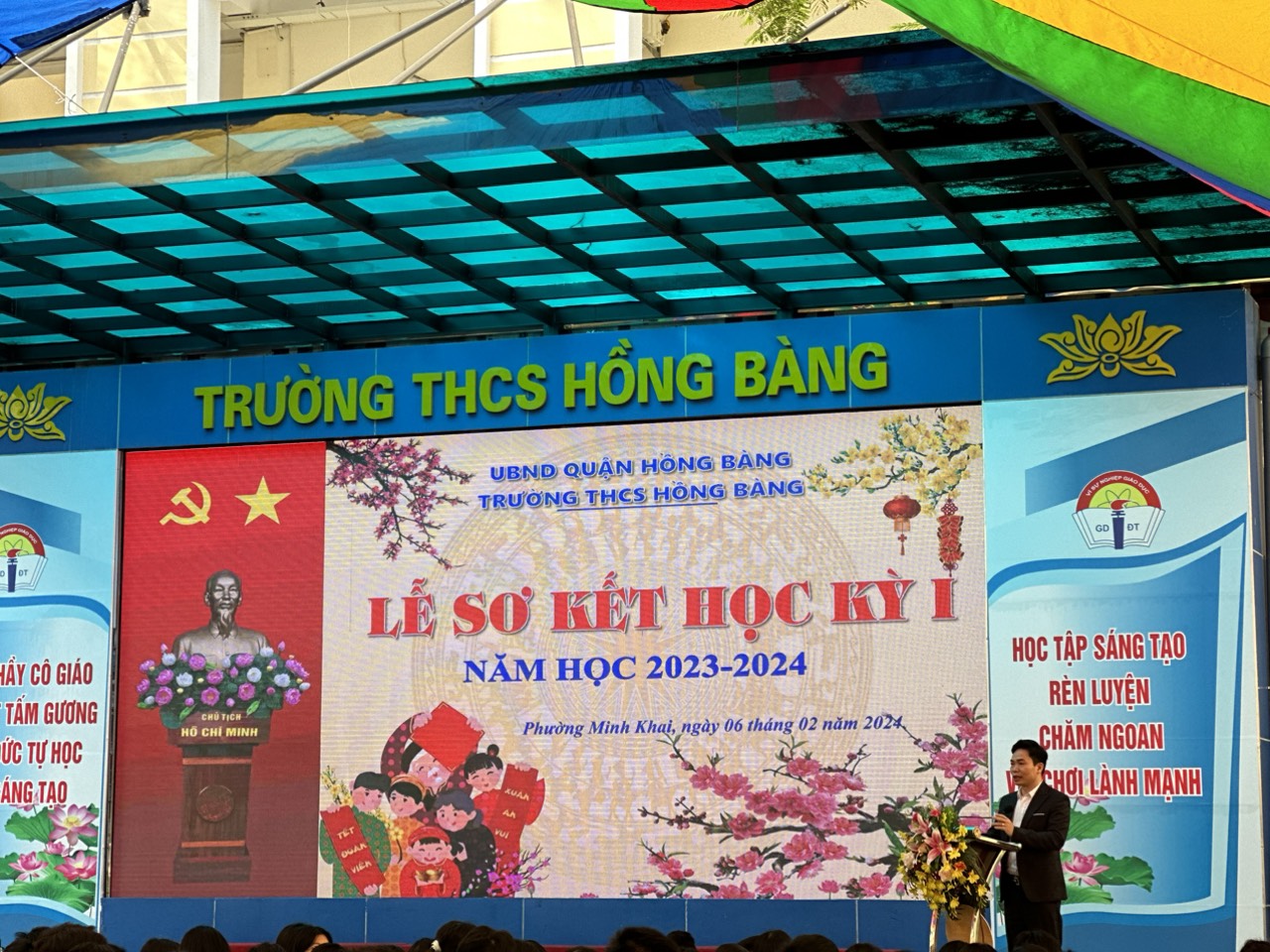 Thực hiện chương trình công tác Đội và phong trào thiếu nhi năm học 2023 - 2024 của Ban thường vụ Quận đoàn - Phòng giáo dục và đào tạo quận Hồng Bàng; Thực hiện chỉ đạo của Đảng uỷ, Ban giám hiệu nhà trường. Ngày 06 tháng 02 năm 2024 Liên đội trường THCS Hồng Bàng tổ chức buổi lễ chào cờ với chủ điểm “Mừng Đảng mừng Xuân”.