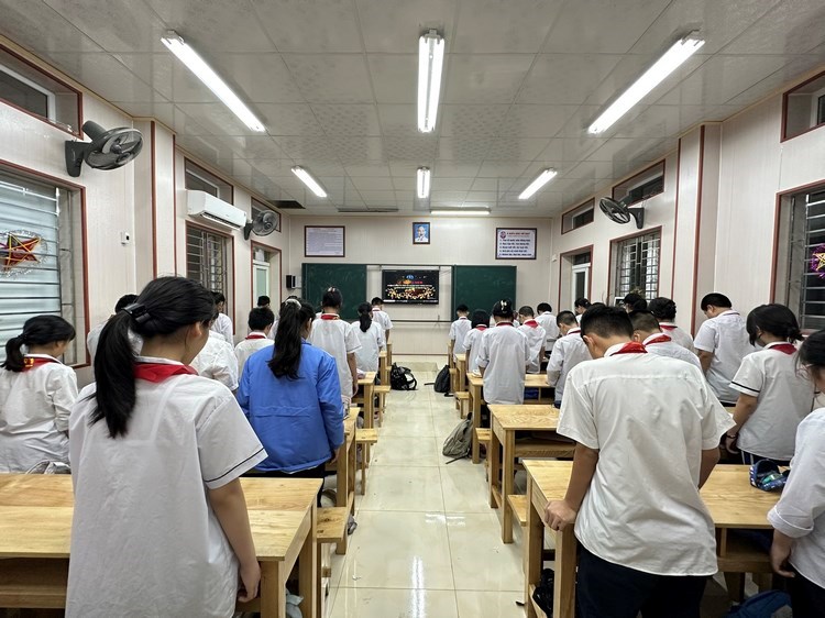 Liên đội trường THCS Hồng Bàng tổ chức Lễ chào cờ tháng 11 - Tưởng niệm các nạn nhân tử vong do tai nạn giao thông năm 2023